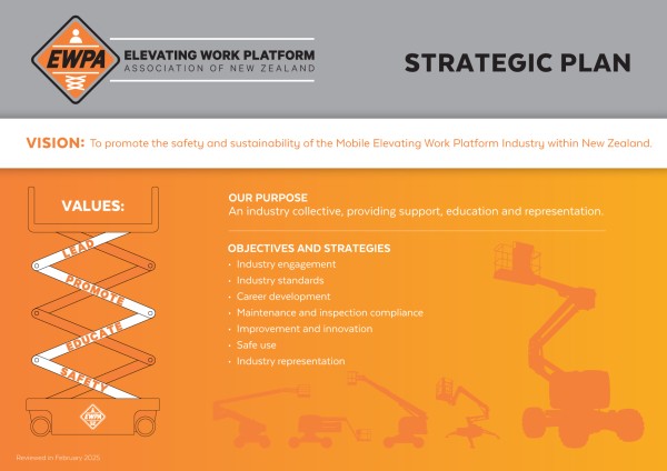 Vision: To ensure the safety and sustainability of the Elevating Work Platform Industry within New Zealand
